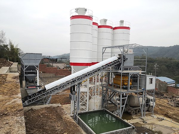 In view of the local characteristics of uneven aggregate gradation (deviation up to 15%), large differences in cement performance (strength grade 32.5R) and large fluctuation of aggregate water content (3%-8%), HUITE optimized the structure and control system of the HZS180 stationary concrete batching plant to improve the adaptability to raw materials, ensuring the concrete strength qualification rate of not less than 99.5%. First, the aggregate batching system was upgraded: the aggregate screening device (screen mesh size 5mm, 10mm, 20mm, 40mm) was added to classify the uneven aggregate into 4 specifications, and the batching accuracy was adjusted to ±1.5% (higher than the standard ±2% of HZS180 mixing plant) to ensure the stability of aggregate ratio. Second, the mixing host was improved: the JS3000 forced double-horizontal shaft mixing host (matching the HZS180 model) was adopted, the mixing blade and liner were replaced with wear-resistant alloy materials, and the mixing structure was optimized to enhance the mixing intensity and uniformity, which can effectively solve the problem of uneven mixing caused by the difference in cement performance.
